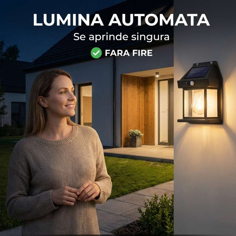 Noaptea, lampă se aprinde automat și oferă lumină constantă.